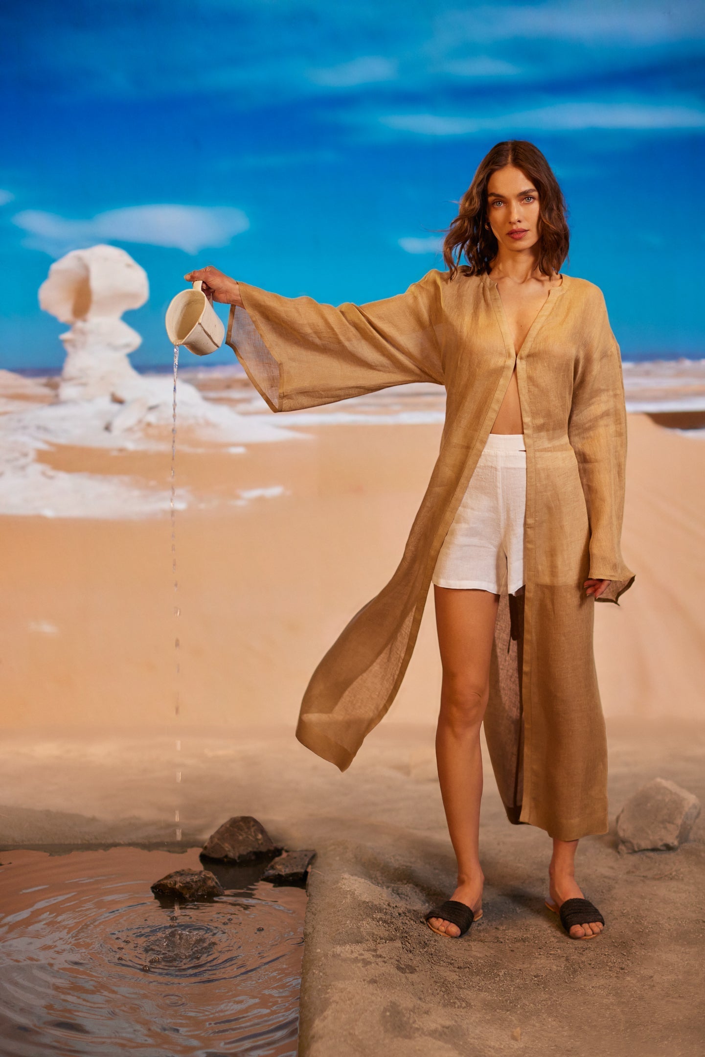 Exhale Keten Şort - Beyaz